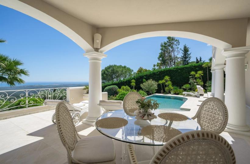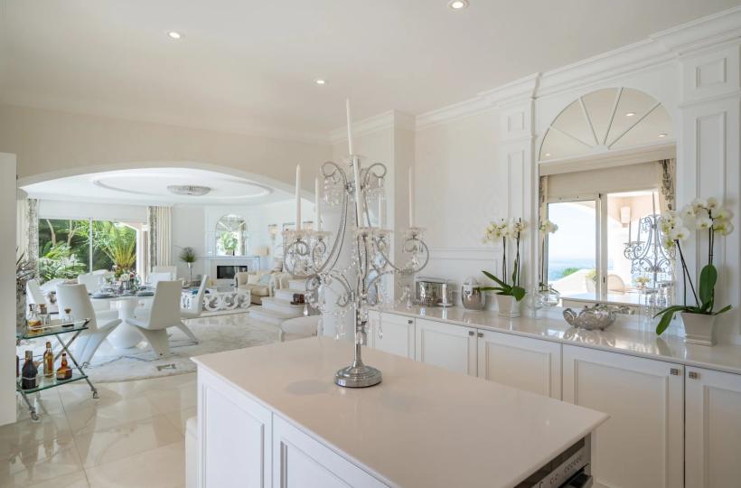 Numerous outdoor spaces surround the infinity pool, offering plenty of opportunities for relaxation and outdoor entertaining. The carefully landscaped garden provides a pleasant setting. To guarantee security and peace of mind, the villa is equipped with an alarm system and electric gate.