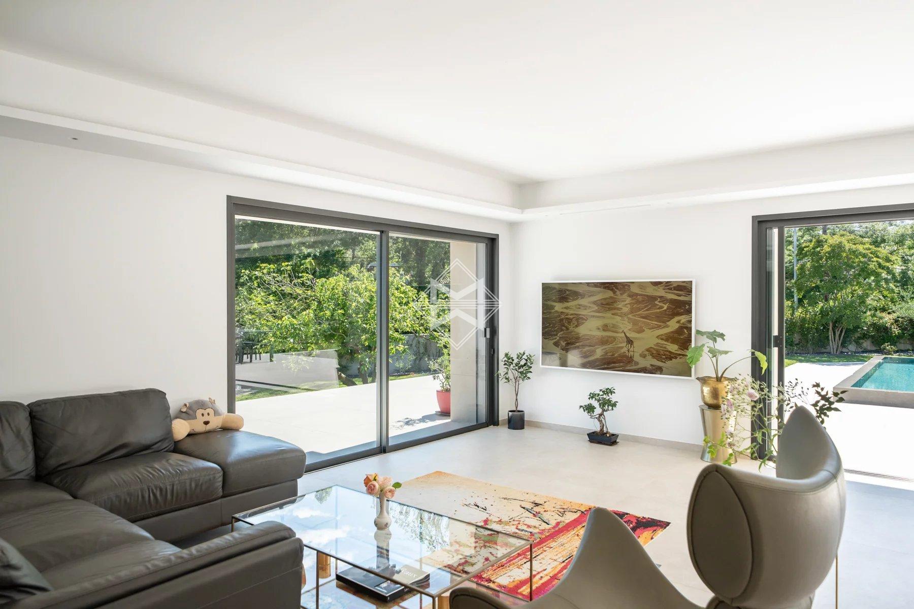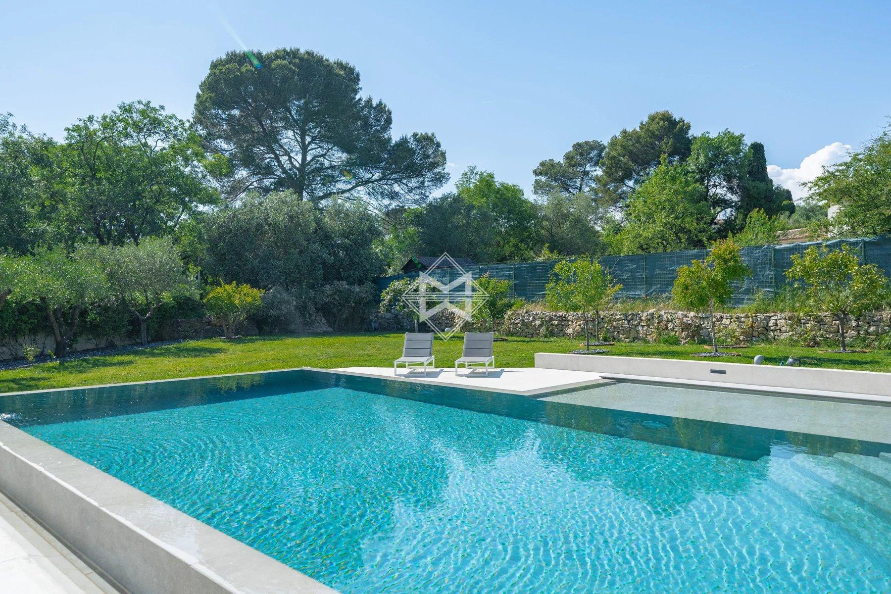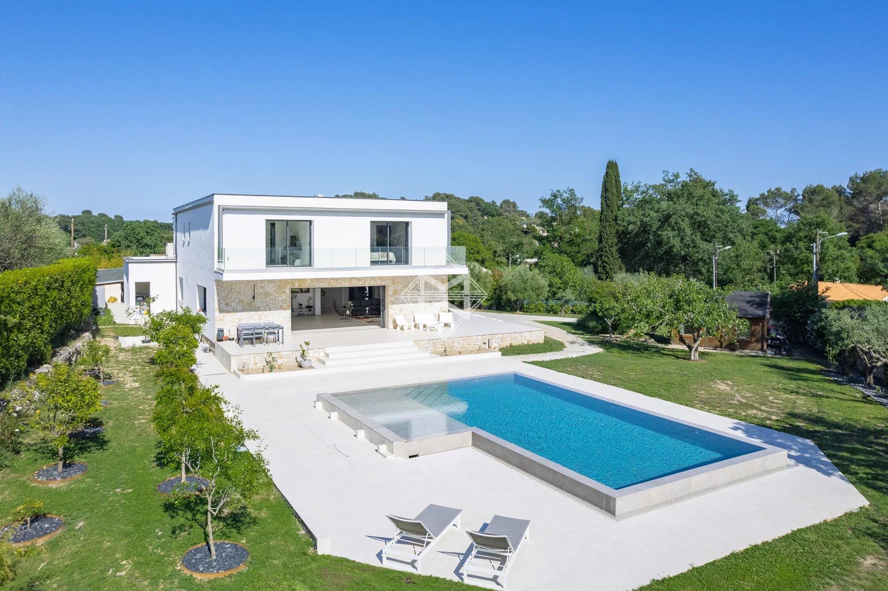 Magrey&Sons presents this co-exclusive, superb contemporary villa with clean lines, offering approximately 330 m² of living space plus annexes, located in a quiet neighborhood, close to the village of Valbonne, international schools, and within walking distance of restaurants.