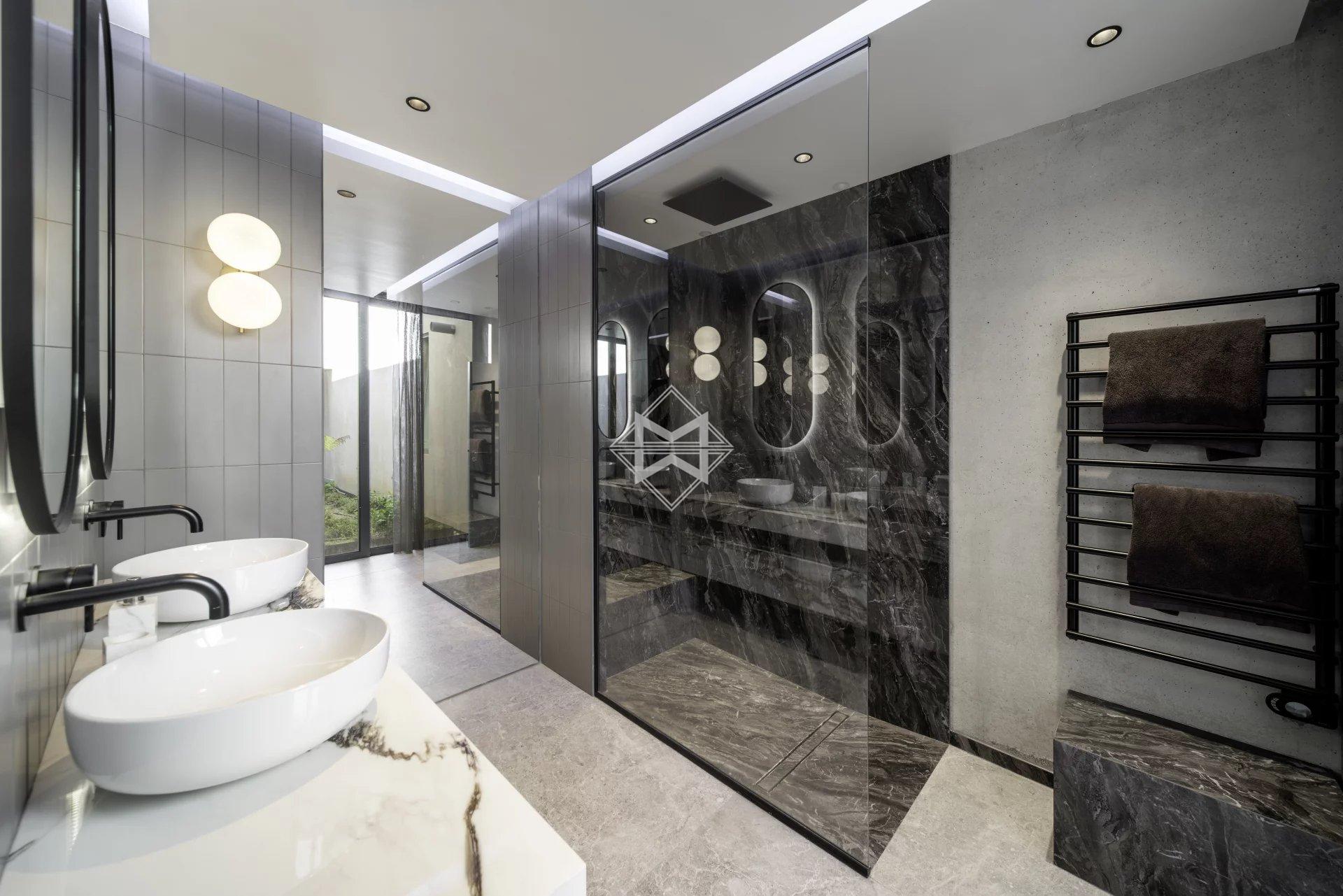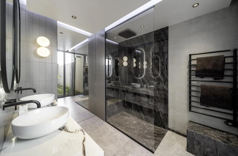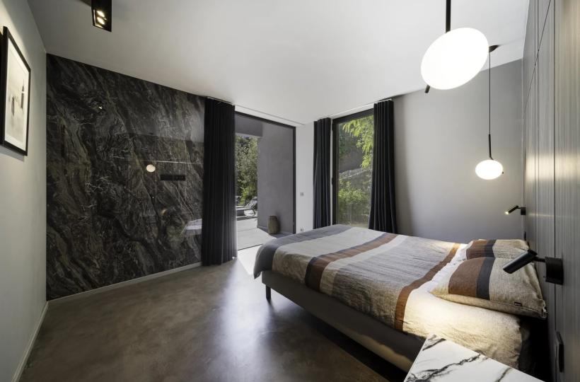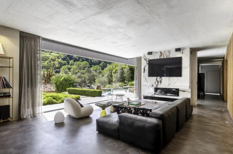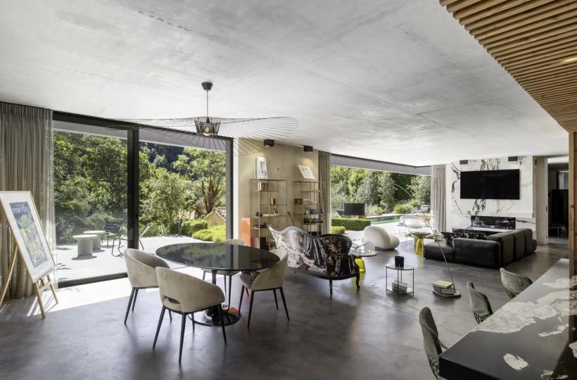 The remarkable interiors, particularly the vast living area, open generously onto the outdoors, dissolving the boundary between inside and out. This ensures exceptional natural light from morning to evening and offers breathtaking views of the garden and the magnificent swimming pool.