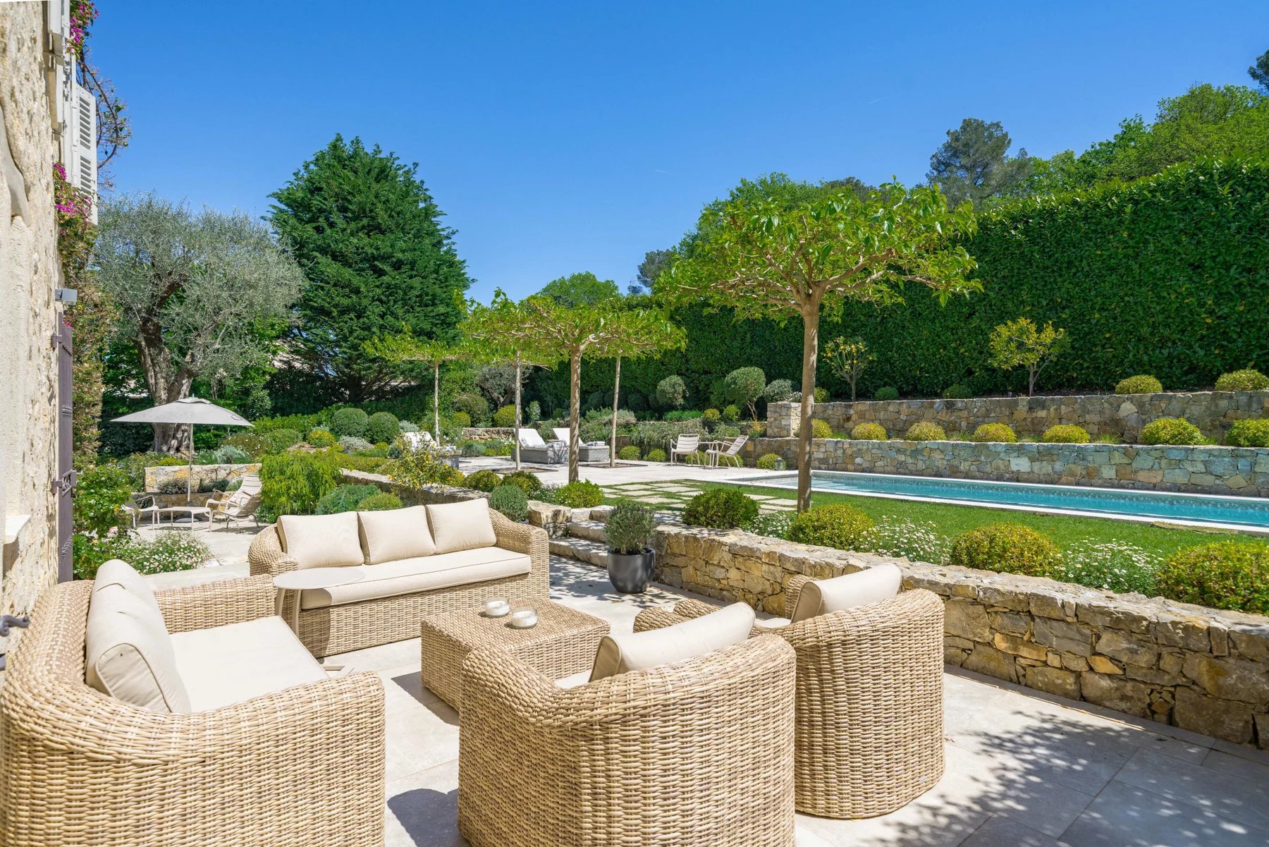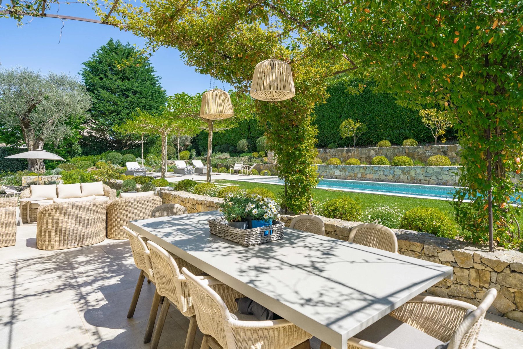 At the foot of the village of Valbonne, nestled in a preserved haven of greenery, this exceptional contemporary architect-designed home masterfully blends modern design, tranquility, and nature. It is surrounded by a stunning setting of lush forest and a meticulously landscaped garden inspired by the "English Garden" style — a true invitation to serenity and privacy.