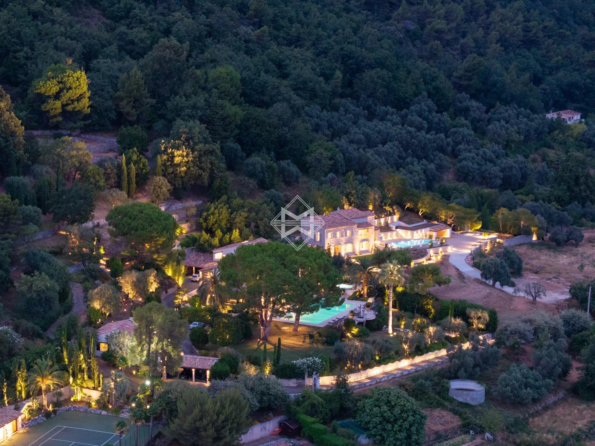 Located on the most sought-after heights of Vence, this private, landscaped estate of nearly 2.5 hectares designed by renowned landscape architect Jean Mus